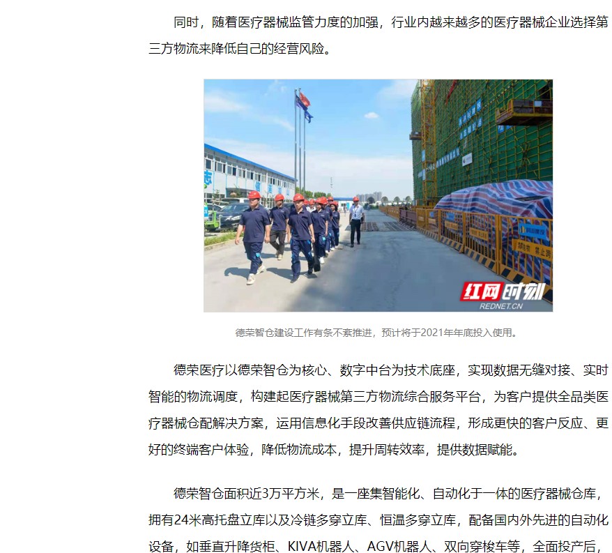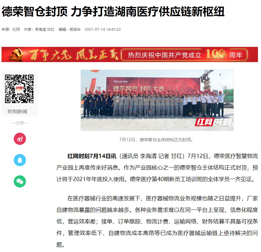【紅網(wǎng)】德榮智倉(cāng)封頂 力爭(zhēng)打造湖南醫(yī)療供應(yīng)鏈新樞紐